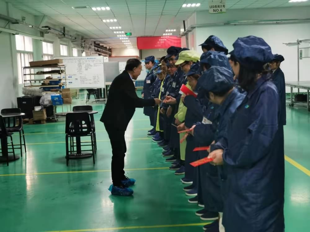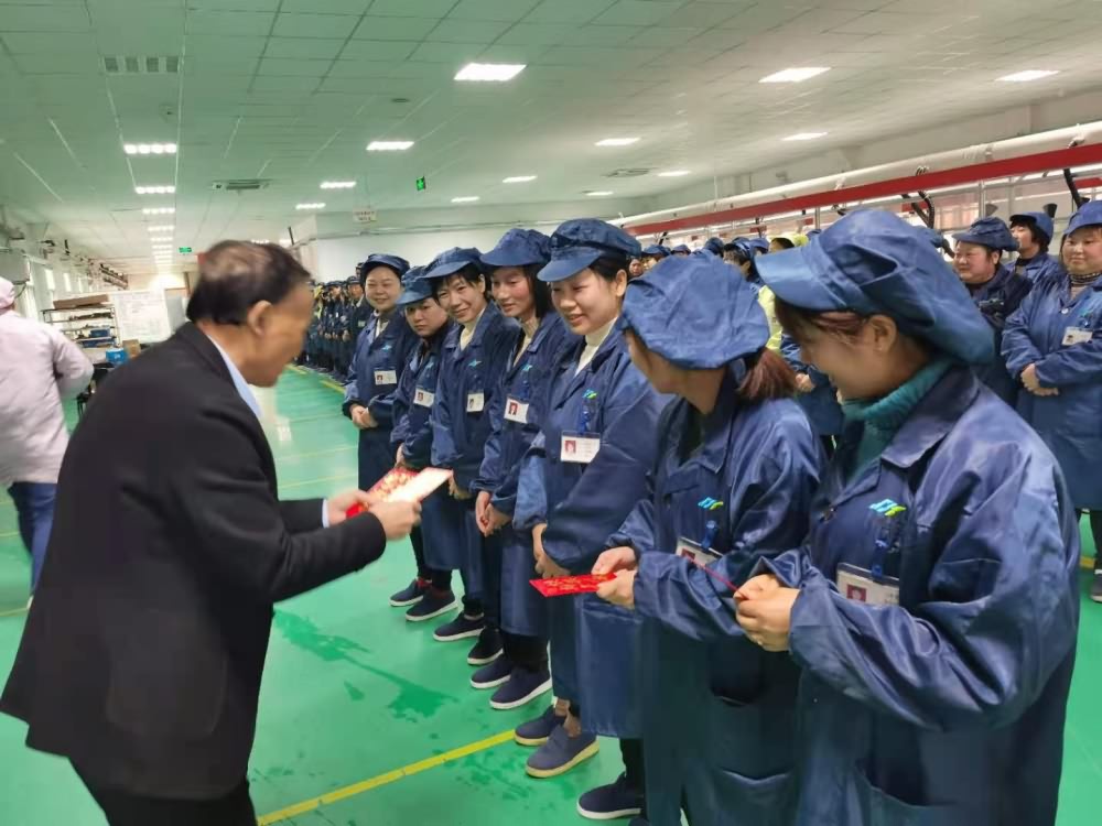 紅包由董事長及(jí)總經理親自(zì)分發,送到(dào)每位員工的手中,每位員工的臉上都洋(yáng)溢著幸(xìng)福的笑容。